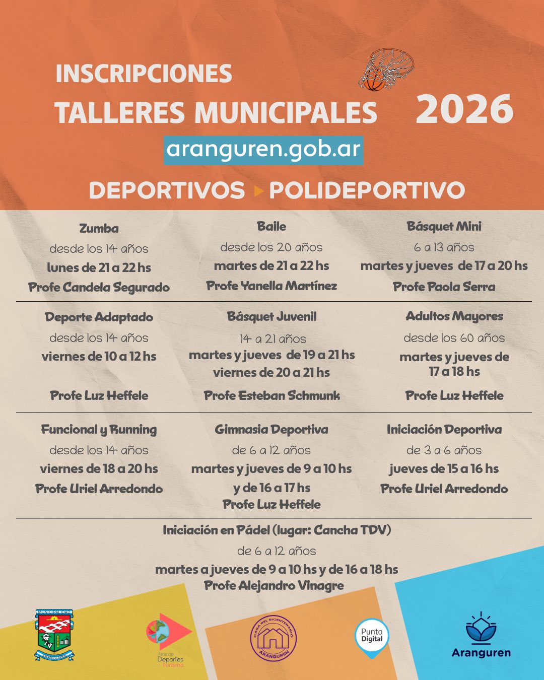 La Municipalidad de Aranguren habilitó oficialmente el registro para su programa de formación y recreación 2026. Los interesados deben realizar la inscripción a través de la web oficial aranguren.gob.ar. A continuación, se detallan todas las propuestas disponibles distribuidas por sedes y disciplinas: