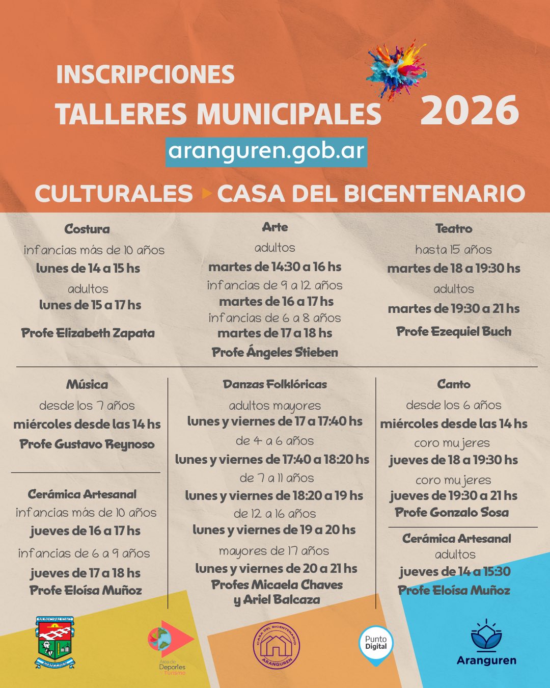 Aranguren abrió las inscripciones para los Talleres Municipales 2026