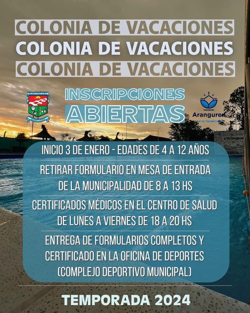 El Municipio confirmó la apertura de las inscripciones para la Colonia de Vacaciones Municipal, que dará inicio el 3 de enero para niños de 4 a 12 años.
