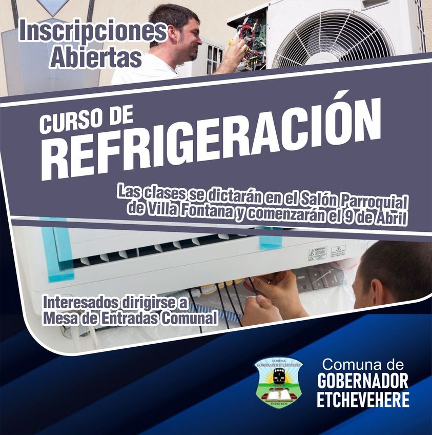 La Comuna confirmó que se desarrollará un curso de refrigeración, para el cual ya están las inscripciones abiertas. Las clases se dictarán en el Salón Parroquial de Villa Fontana y comenzarán el 9 de abril.