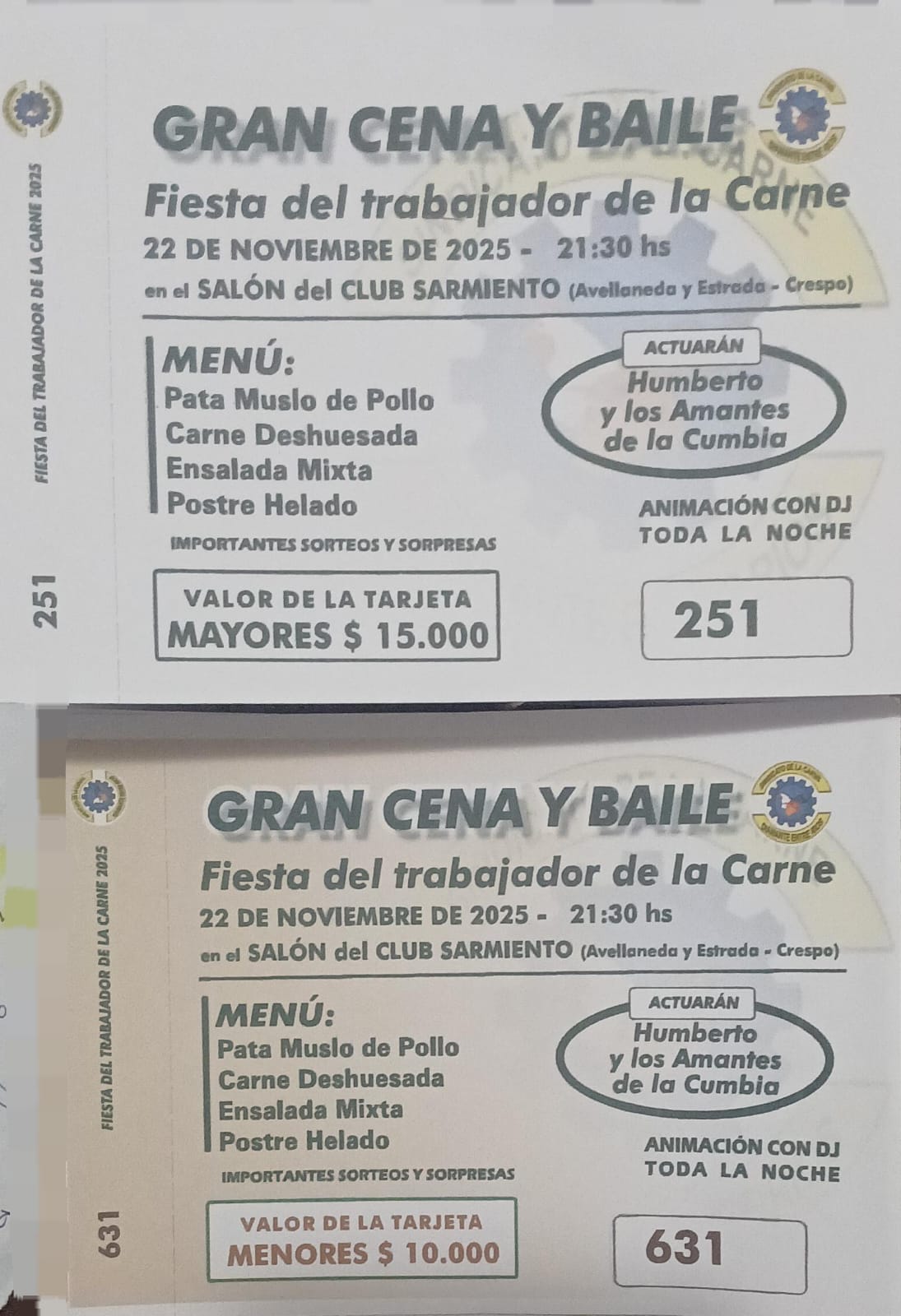 Este sábado 22 de noviembre a partir de las 21.30 se llevará a cabo una cena y baile para celebrar la Fiesta del Trabajador de la Carne.