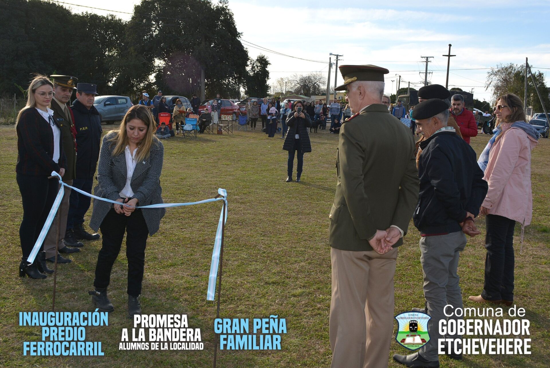 Con un importante marco de público que acompañó la iniciativa, la Comuna organizó el evento en el que los alumnos de la Escuela Primaria local realizaron la Promesa a la Bandera Nacional. La ocasión fue propicia también para inaugurar en el Predio del Ferrocarril el Paseo Ferroviario «Héroes de Malvinas», coronando la jornada con una Peña Familiar donde actuaron la Academia de Baile de Villa Fontana y Las Voces de Montiel.