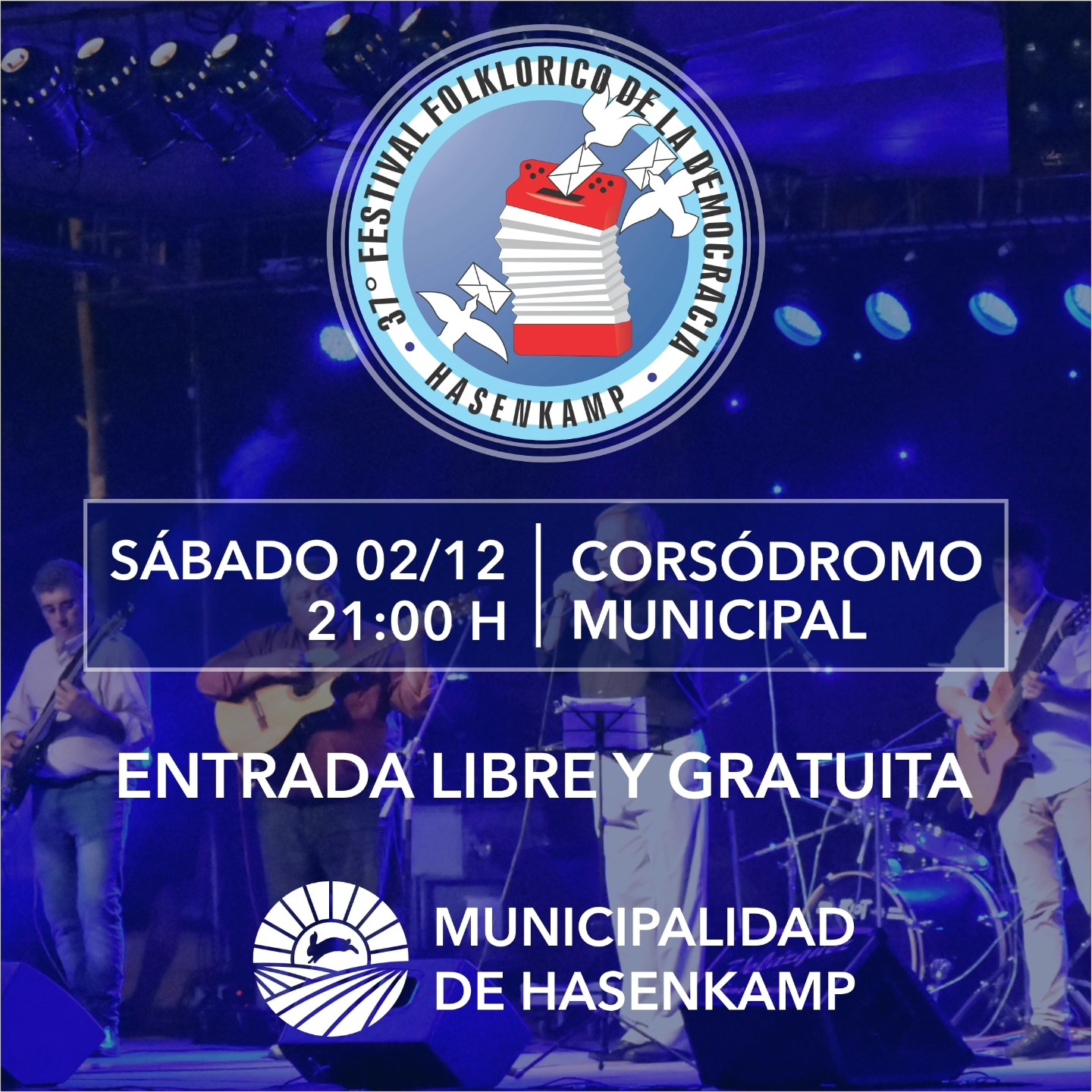 Los días 1 y 2 de diciembre la localidad vivirá el 37° Festival de la Democracia y el Encuentro de Bandas “Hasenkamp Rock”. Ambos eventos serán con entrada libre y gratuita.