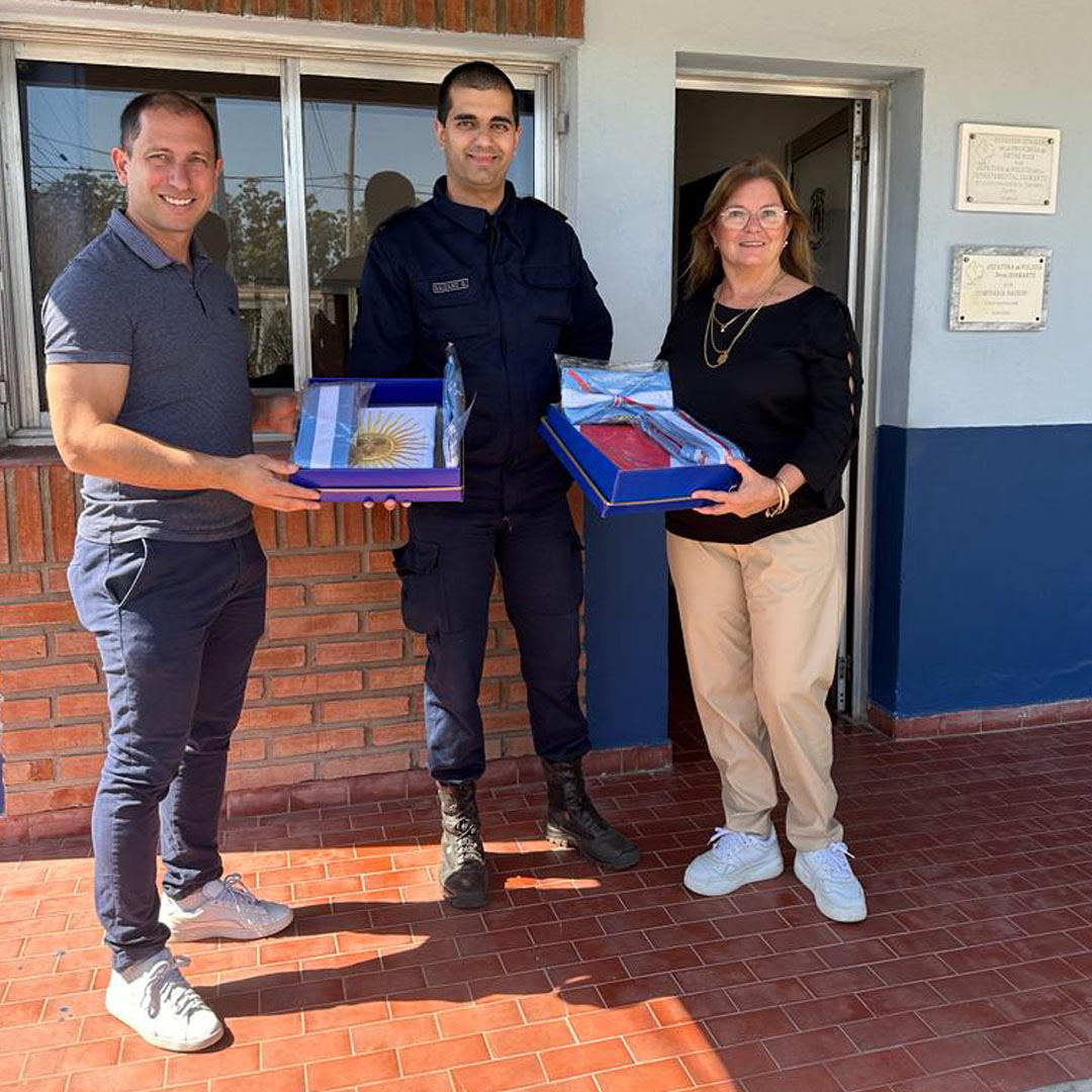 Se reunieron además, junto al presidente comunal Julio César Demartín, con Gastón Giménez, el nuevo comisario de Racedo, para entregarle banderas de ceremonia para los actos públicos.