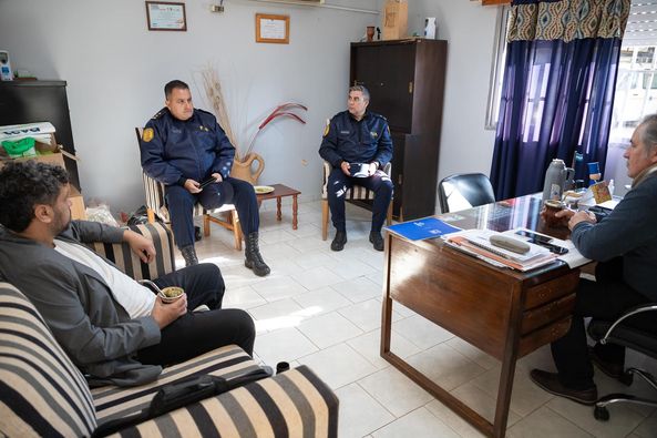 En el Municipio recibieron al Jefe de la Policía Departamental, Comisario Mayor Eduardo Rafael Godoy, y al Sub Jefe, Comisario Inspector Diego San Martín. Dialogaron acerca de mejoras en el sistema de videovigilancia y el abordaje de consumos peligrosos. Además, se recibió la visita del Verificador vehicular, a los fines de prestar ese servicio al parque automotor municipal.