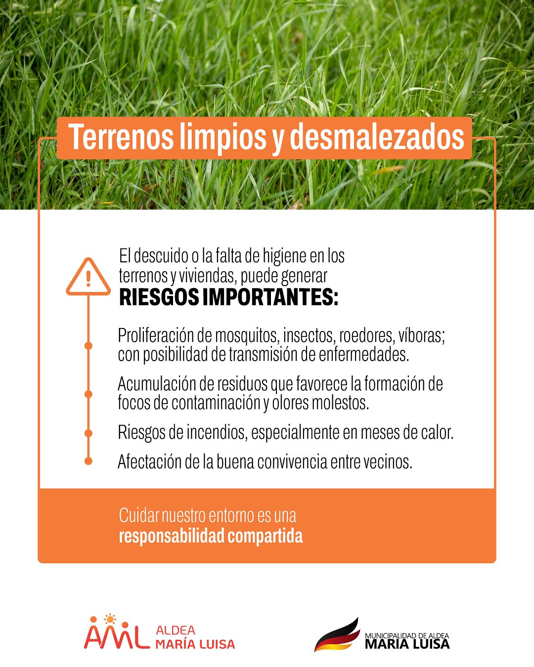 El Municipio recuerda a los propietarios de terrenos, que es su responsabilidad mantenerlos limpios y desmalezados.