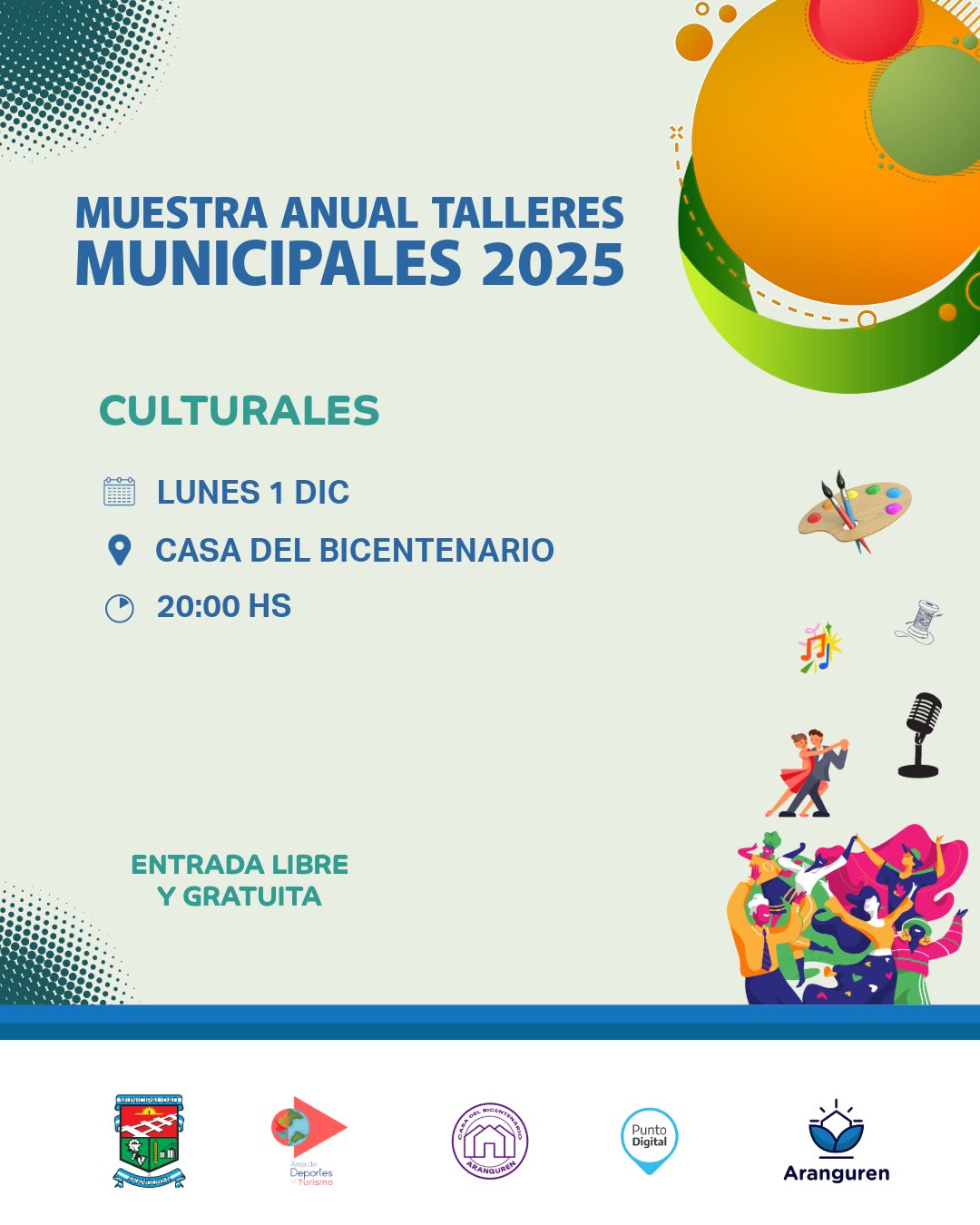 El Municipio invita también a su Muestra Anual de Talleres Municipales Culturales. Será el lunes 1 de diciembre a partir de las 20:00 en la Casa del Bicentenario.