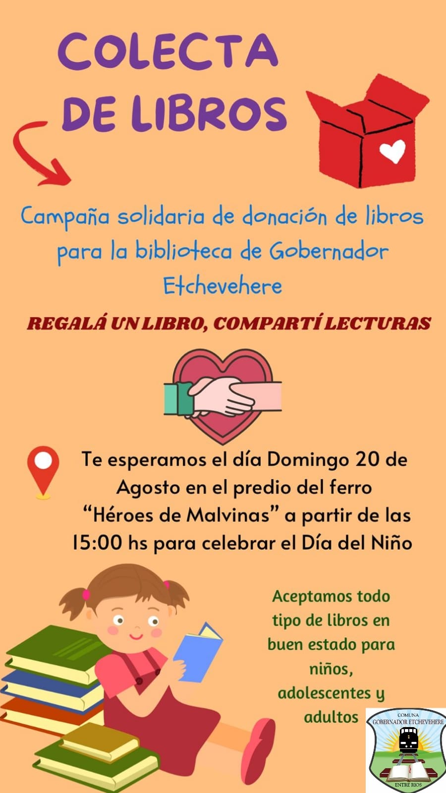 Durante la jornada, además, se llevará a cabo una campaña solidaria de donación de libros para la Biblioteca de Gobernador Etchevehere. El único requisito es que estén en buen estado de conservación.