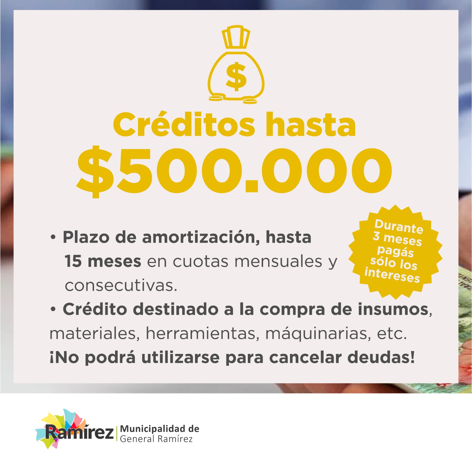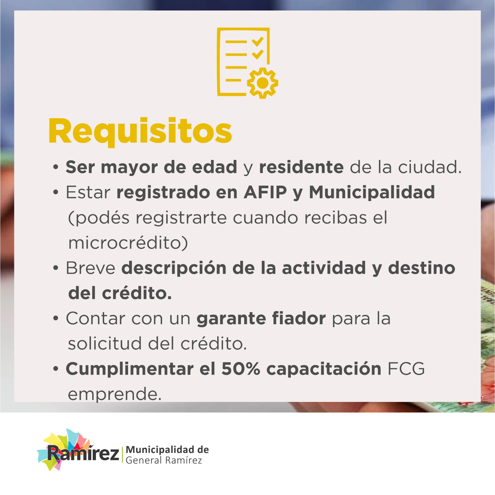 El Municipio de Ramírez confirmó el relanzamiento del Programa Municipal de Microcréditos.