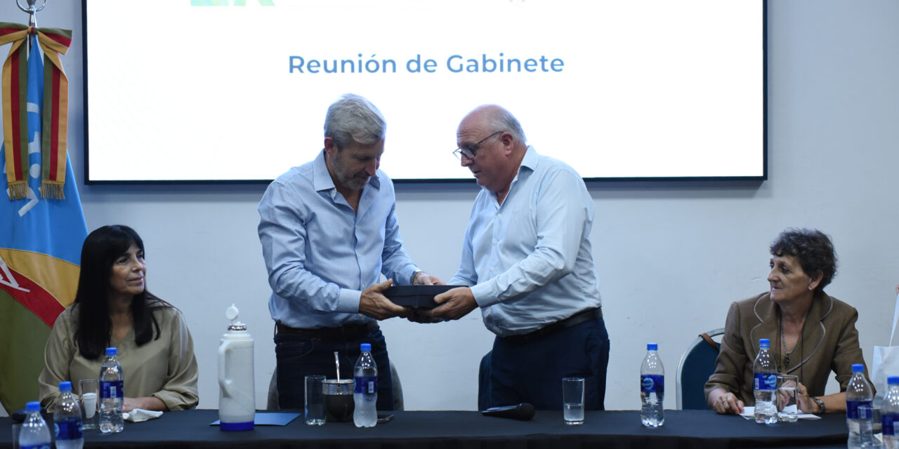 Fue recibido por el intendente Marcelo Cerutti. En la oportunidad, lideraron una jornada de trabajo de ‘gabinete compartido’ (provincia-municipio) que duró alrededor de dos horas. Fue en el Auditorio Municipal ‘Eva Perón’.