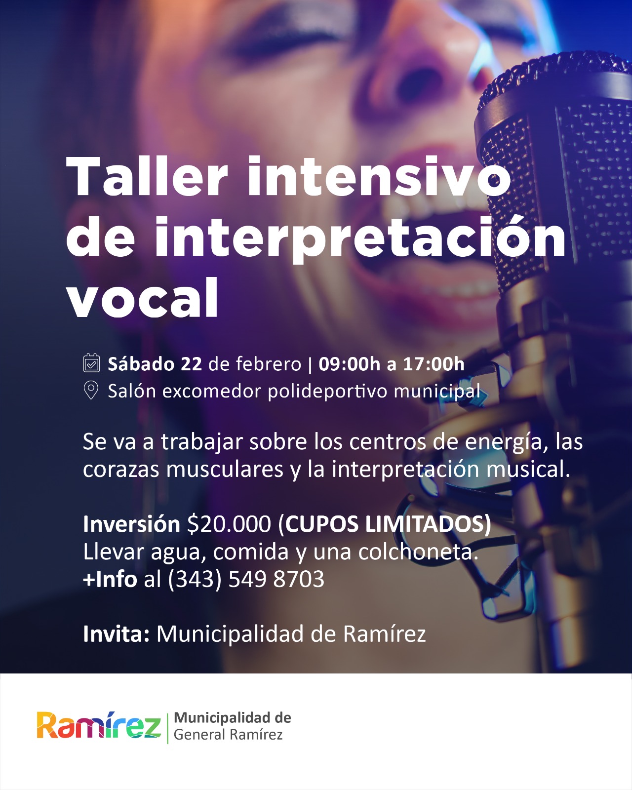 Inversión: $20.000, los cupos son limitados. Por inscripciones o consultas, comunicate al 3435498703. Invita: Municipalidad de General Ramírez.