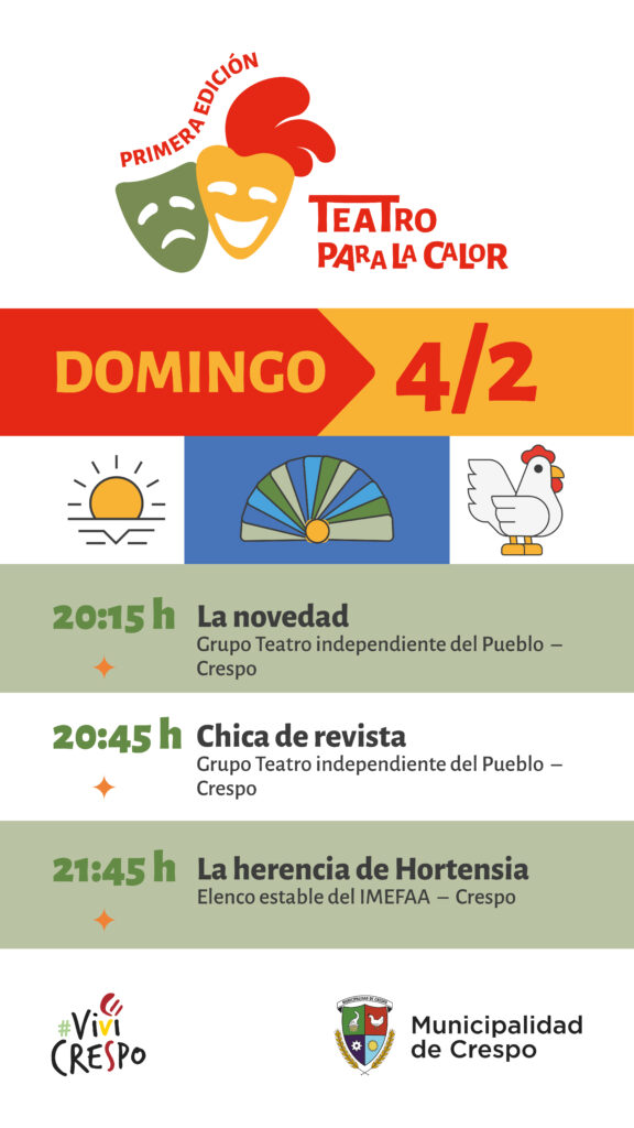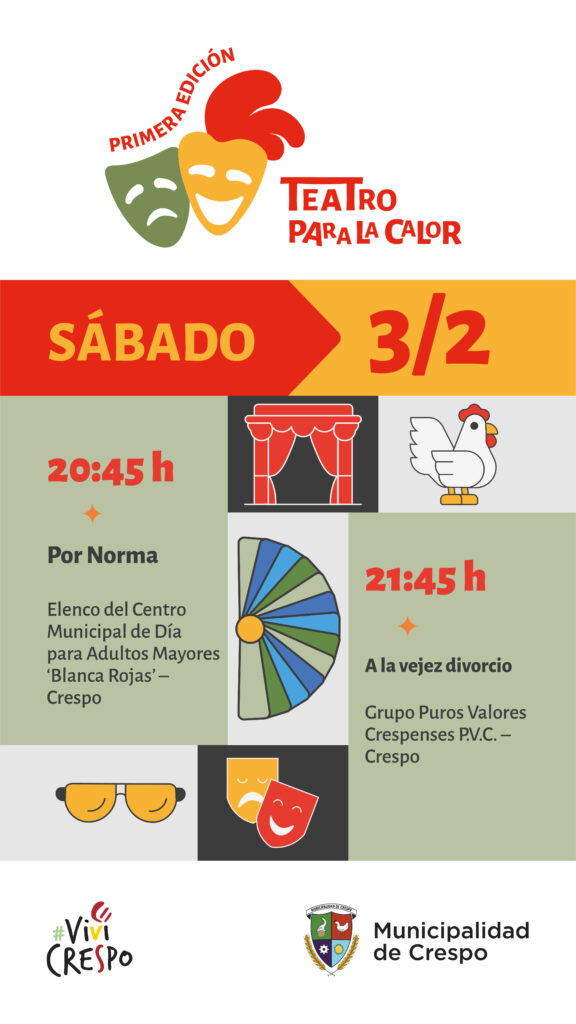 Crespo ya se está preparando para el segundo fin de semana de la ‘1ª edición del ciclo: Teatro para la calor’, que organizan en forma conjunta la Municipalidad de Crespo con los elencos locales.